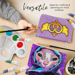 Acrylic paint is versatile & suitable for most art techniques & surfaces, including canvas, paper, glass, clay, wood, fabric, leather, ceramics, rocks, & more! It’s perfect for creating wearable art & customizing different materials around the house.