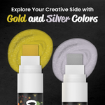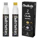 Decorate your windows with this magical and shimmering metallic duo in Golden Shine and Deep Space Silver. Write fun messages, doodle twinkling stars, create a dazzling universe–and let everyone see your creativity! These jumbo chalk markers glide onto non-porous surfaces smoothly and can easily be wiped off, leaving no smudge or dust. So you can keep using your favorite surface again and again! Get your set of metallic chalk pens today and start adding sparkle and shine on your windows!